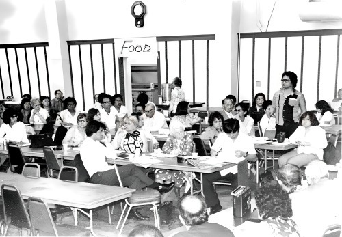 Silme Domingo at the Seattle Filipino Community Center's Board of Directors meeting in 1980. By Cindy Domingo. Photo courtesy of Alaskero Foundation.